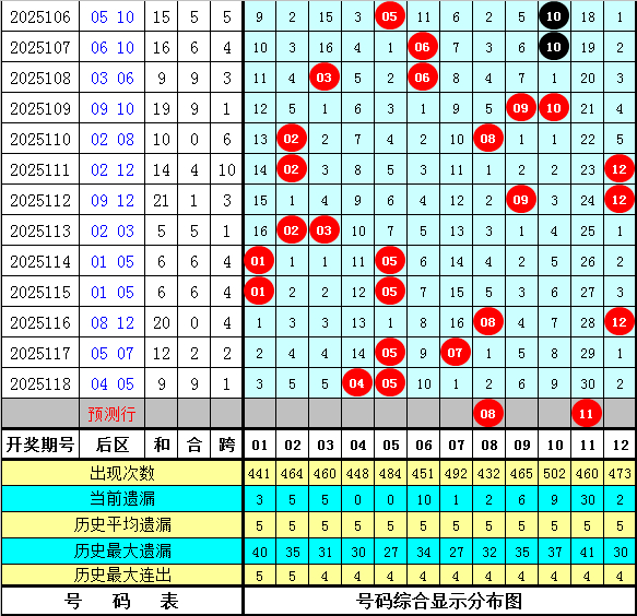 后区五码参考:01 02 08 09 11