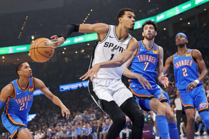 文班亚马在这三场比赛中场均能砍下25分12篮板,完全压制了雷霆队的内线。